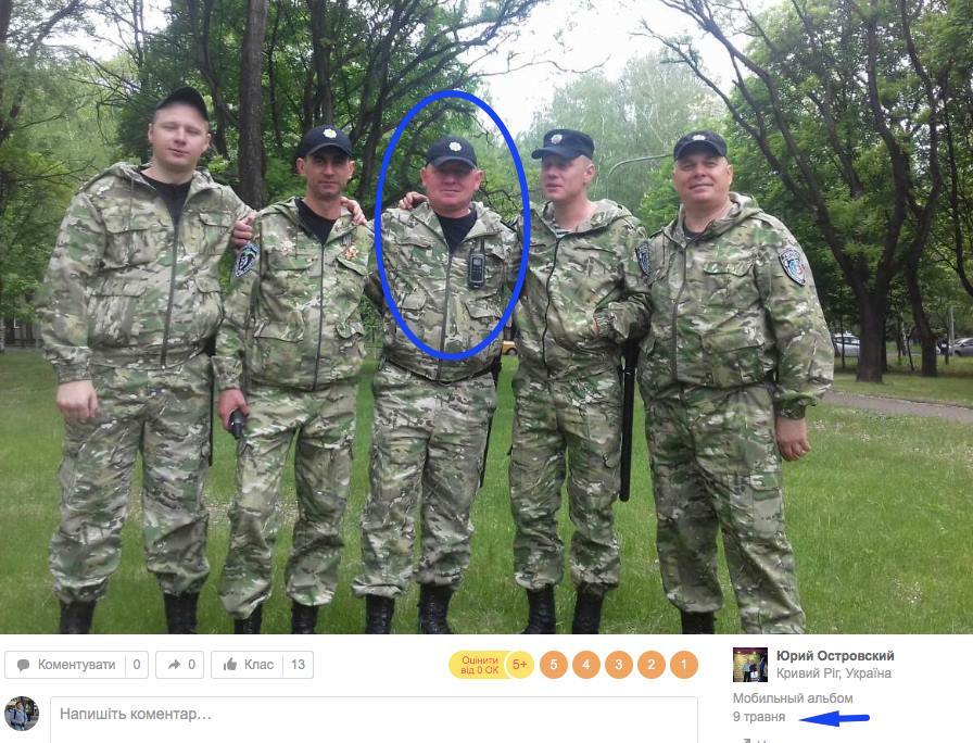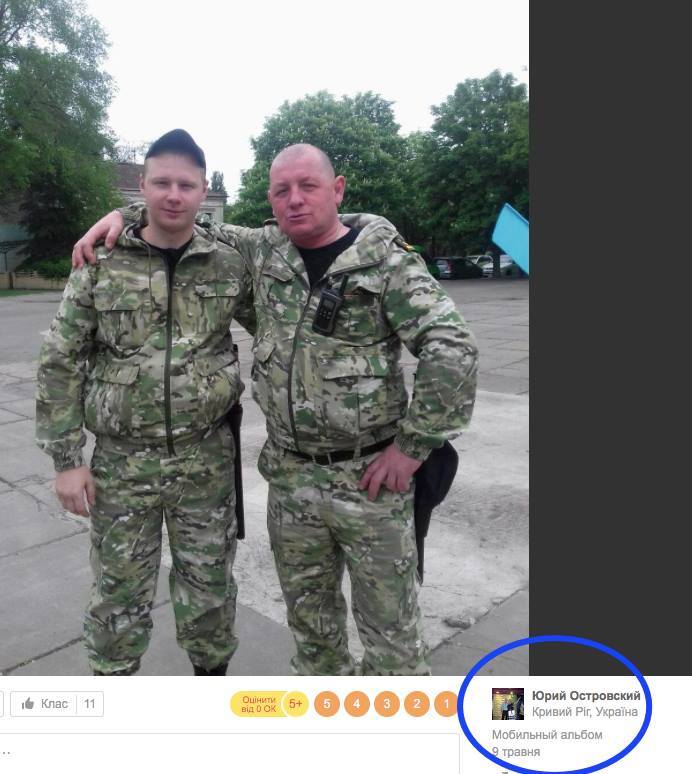 "Местный помет ОПГ ЗУБР, имеет автомобиль ВАЗ2109 номерной знак АЕ3565ИС. Откровенная ваттная пророссийская дрянь! Может быть причастен к избиению патриотов на параде 9 мая 2017 в Днепропетровске", - добавил Дзиндзя, опубликовав снимки Островского из соцсети.