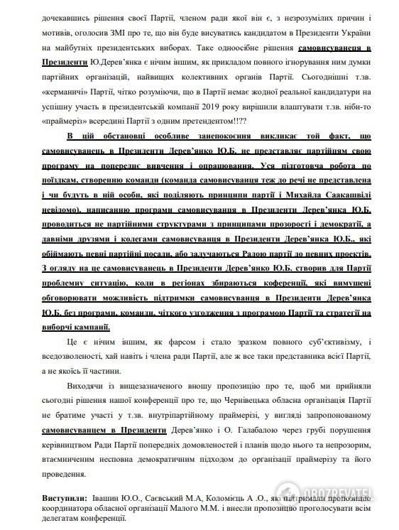 Кандидатура Деревянко, который по информации OBOZREVATEL решил фактически "подмять" политсилу под себя, не нашла поддержки в Сумской и Черновицкой областях.