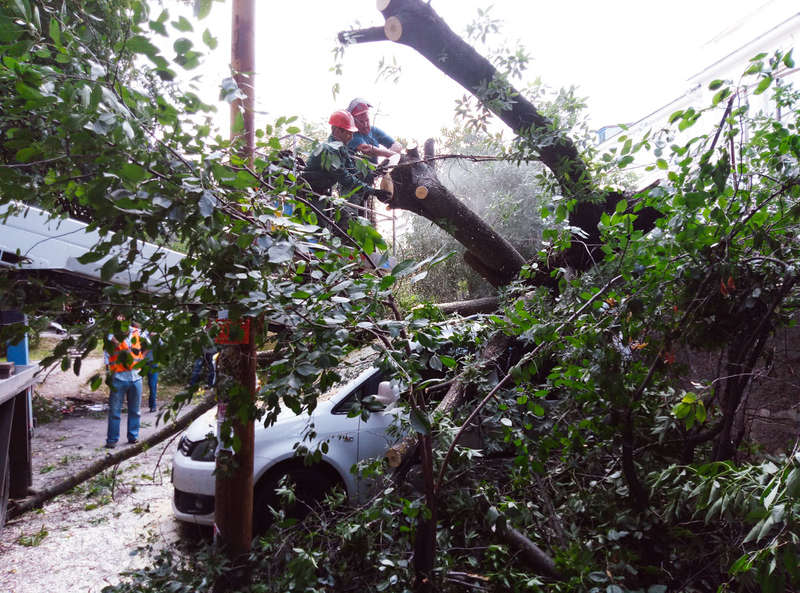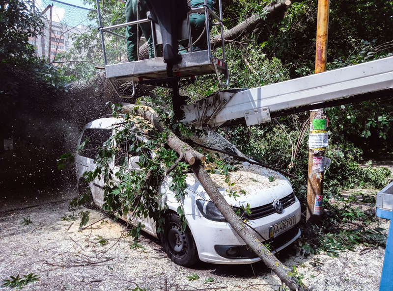 В Киеве на Куреневке дерево проломило бетонный забор и придавило Volkswagen Caddy