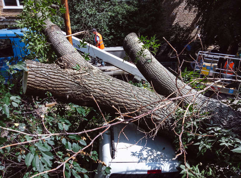 В пятницу, 20 июля, во дворе дома 31 на улице Копыловской на автомобиль Volkswagen Caddy упало большое дерево. Водитель обнаружил свой автомобиль под упавшим деревом утром, когда вышел во двор.
