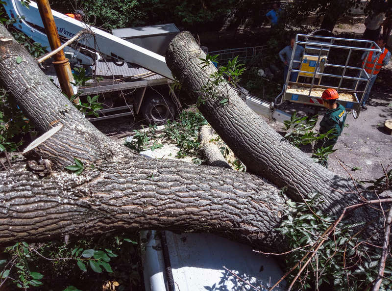 На данный момент на месте работают коммунальщики, которые распиливают ствол, чтобы можно было извлечь пострадавшее авто. Владелец Volkswagen ищет варианты для возмещения ущерба от служб, отвечающих за территорию, на которой росло дерево. Местные жители сообщили, что дерево давно скрипело, и они боялись, что вскоре оно может упасть, однако официальные жалобы никто не подавал.