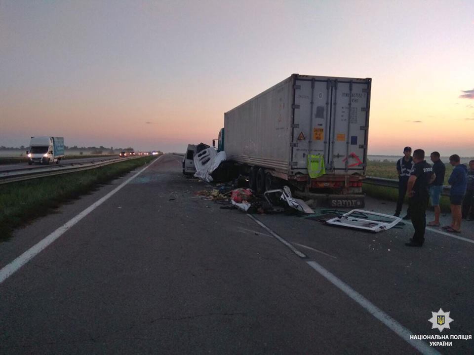 Вблизи поселка Кривое Озеро Николаевской области около пяти часов утра произошлосмертельное ДТП с участием микроавтобуса и грузовика.