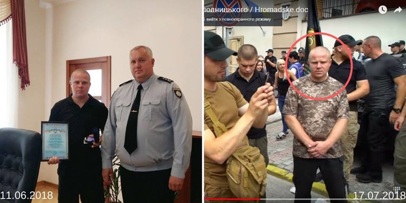Шабунин приводит фото лиц, которые были зафиксированы среди нападающих, и фото этих же лиц в форме полицейских. Фото провокаторов взято с официального сайта Полиции охраны МВД: