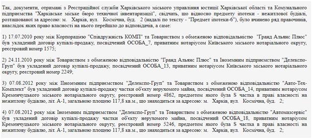 Собственно, в июле 2010 г. между Корпорацией “Содружество КОМП” и ООО “Гранд Альянс Плюс”. В ноябре 2010 г. между ООО “Гранд Альянс Плюс” и ИП “Делекспо Груп” и в августе 2012 между Делекспо и ООО “Автомазсервис и ООО “Авто-Тех-Комплект”. Все эти компании либо аффилированны с АИС либо создавались в качестве “подложки” для выведения ипотечного имущества. К слову, учитывая фиктивность некоторых предприятий, следственным управлением налоговой администрации в 2010 г. по этому поводу было открыто уголовное дело. Фигурировало в данном уголовном производстве и ООО “РД-Сервис” на счетах которого, было более 60 млн. гривен. Его директор - Виталий Сызранцев, который в октябре 2010 г. продал Дмитрию Святашу 100% корпоративных прав всего лишь за 51 тысячу гривен, в рамках вышеуказанного уголовного дела был привлечен в качестве обвиняемого.