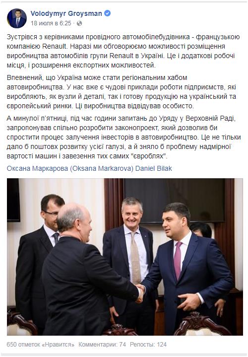 Гройсман благословил ведение бизнеса АИС и Рено на крови