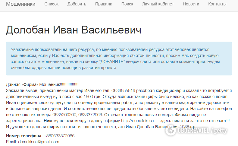 "Берет предоплату за изготовление плинтуса и паркетной доски и не делает продукцию. И деньги не возвращает. Его сайты сейчас заблокированы, но, возможно, он берет заказы с других сайтов", - предупреждает один из пользователей.