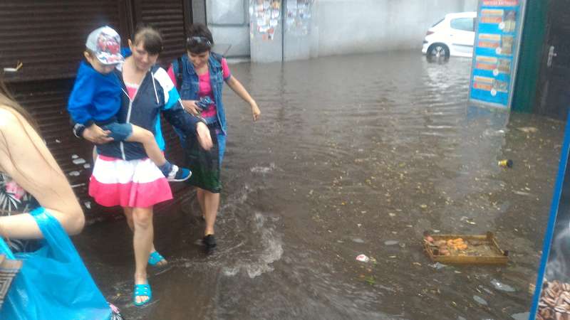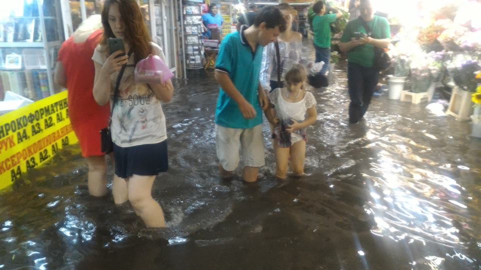 На Татарке вода поднялась настолько высоко, что затопила прилавки уличных торговцев, а некоторые молодые люди переносили девушек по улице на руках.
