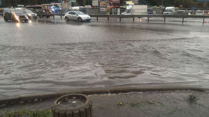 Затопленными оказались улица Дегтяревская, проспект Победы и многие другие улицы в Киеве. Также под водой оказались некоторые автомобили, которые владельцы неосмотрительно оставили на улице.
