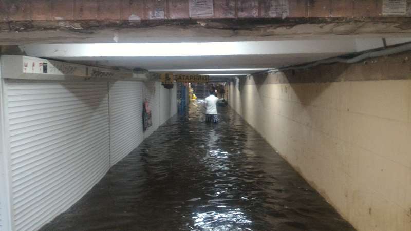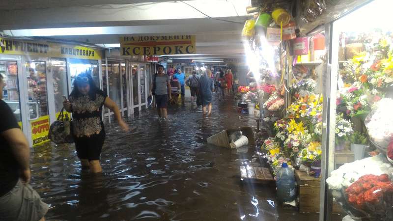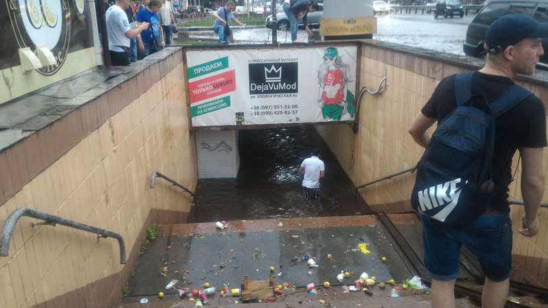 Однако, если в переходе на КПИ вода не поднималась выше уровня колен большинства пешеходов, то переход на Шулявке затопило до потолка.