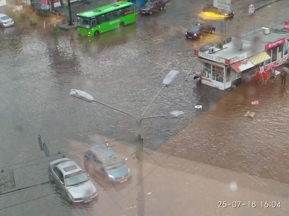 В среду, 25 июля, улицы Киева ушли под воду после сильного ливня. Фотографиями и видео потопа многие киевляне делились в Facebook.