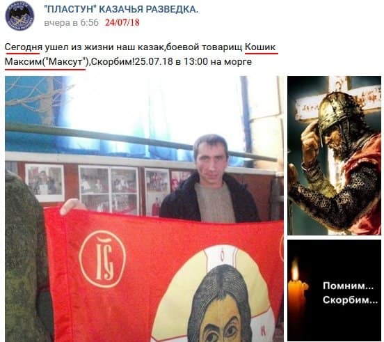 Во вторник, 24 июля, на Донбассе умер террорист Максим Кошик ("Максут"), который воевал в составе казачьего подразделения оккупантов.