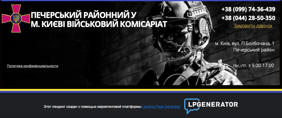 Печерский районный военкомат Киева создал сайт, на котором собирает данные о желающих служить в ВСУ через российские сервисы, а также ранее продавал кофе на этом же ресурсе.