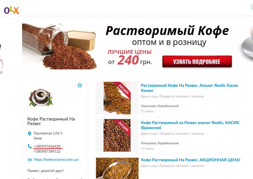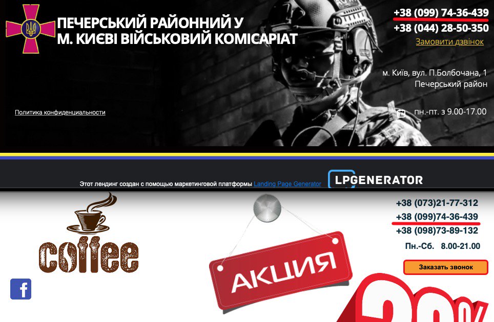 Отметим, что опубликованный на сайте военкомата телефон +38 (099) 74-36-439 был указан на странице по продаже кофе. Также в Сети можно найти объявления по продаже кофе, в которых указан номер телефона +38 (099) 74-36-439, как контактный.