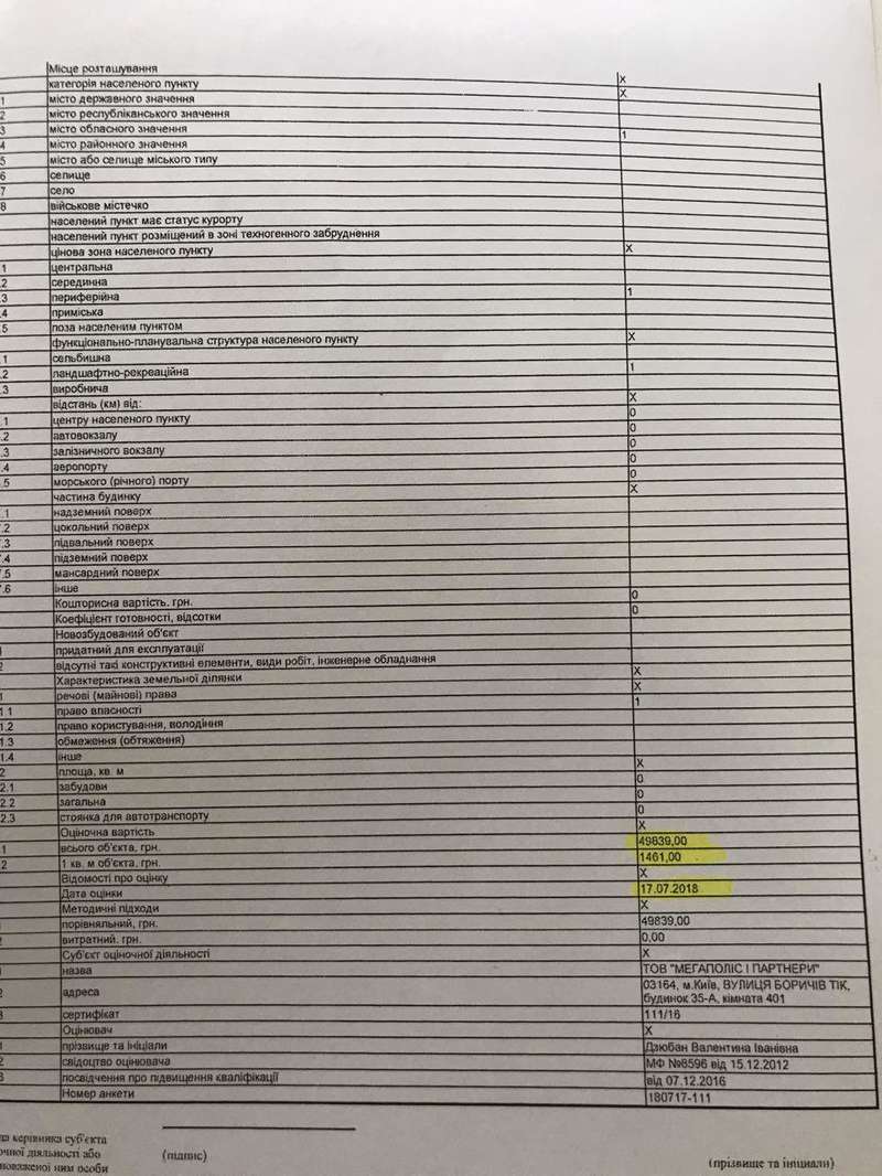 2. Субъект оценочной деятельности ООО «Аналитический центр "Дробнова"» внес в ЕБ информацию по отчету про стоимость нежилой квартиры площадью 44 кв. м. в Киеве по ул. Академика Грекова по цене квадратного метра 2684 грн. Фактическая цена квартиры, при рыночной цене 600-700 долларов за квадратный метр, была занижена в 6-7 раз, отчего было недоплачено налогов более чем на 50 тыс. грн.