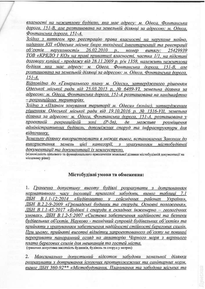 Градостроительные условия и ограничения на застройку участка площадью 0,3 га по адресу Фонтанская дорога, 151-а компания «Кредо и КО« (аффилирована с «Ханнером») получила в апреле этого года, сразу после того, как оформила аренду земли. При этом в подписанной покойным главным архитектором города Александром Головановым бумаге будущая высотка фигурирует как «административное здание».