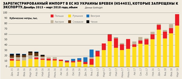 Основным покупателем украинского дерева ожидаемо оказался Европейский союз, долю которого Earthsight оценили в 70 %. Британские эксперты отмечают, что, несмотря на активные действия украинских властей по ограничению рубок, предпринимаемые в последние годы, объем экспорта лесопродуктов в ЕС за 2014‑2017 годы вырос с 670 млн евро до 1.060 млн евро.