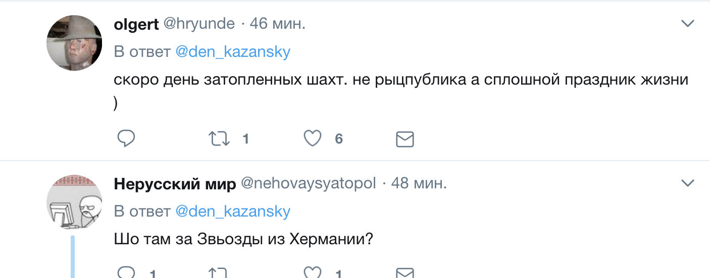 "Скоро день затопленных шахт. Не рыцпублика а сплошной праздник жизни", "Шо там за звезды из Хермании?", "Эти п**ары должны прочувствовать все прелести "русского мира", - отметили в комментариях.