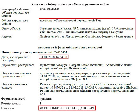 Як бачимо, більшість членів родини прокурора почали займатися бізнесом відносно нещодавно. Втім, цього виявилося досить для придбання доволі дорогої столичної нерухомості. Тому зрозумілим є бажання Юрія Ясеницького отримати посаду в Києві, натомість відповідність доходів, статків і способу життя прокурора мають перевірити правоохоронні органи.