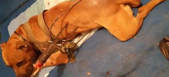 В Киевской области местный житель лупил садовыми вилами американского стаффордширского терьера.