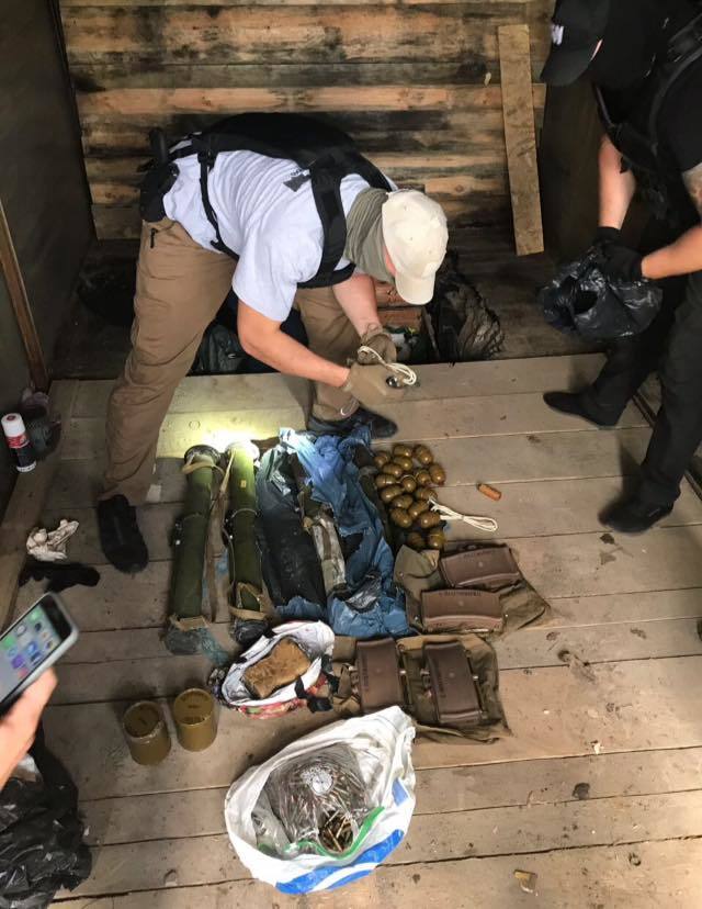 РПГ-26 - 2 шт., РПГ 22 – 2 шт.; міни МОН-50 – 4 шт.; тротилові шашки - 25 шт. вагою 200 гр. кожна; тротилові шашки - 4 шт. вагою 400 гр. кожна; 2 кг (ДВА КГ!!) пластиду;