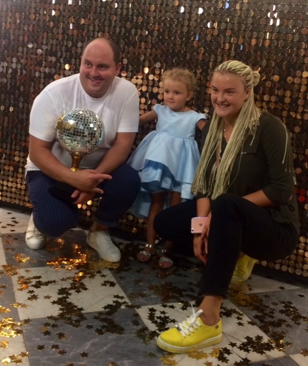*Поддержать коллег пришел и бывший участник проекта, актер Юрий Ткач вместе с супругой и дочерью