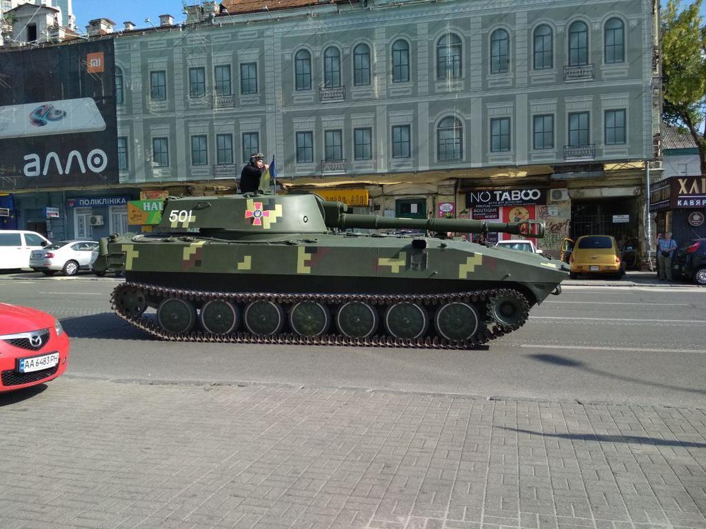 Киевляне тем временем делятся фотографиями и видео военной техники, ездящей по улицам города.