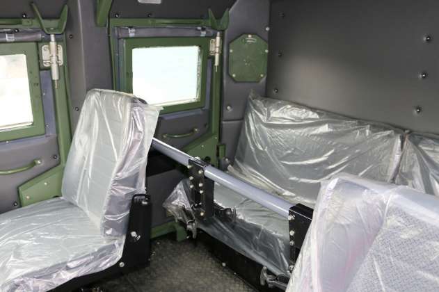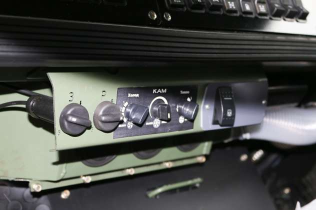 Шасси оборудовано централизованной системой подкачки шин, обеспечивающей высокую проходимость по грунтам с низкой несущей способностью, лебедкой, системой RunFlat, светомаскировочным устройством, фильтровентиляционной установкой и пр.