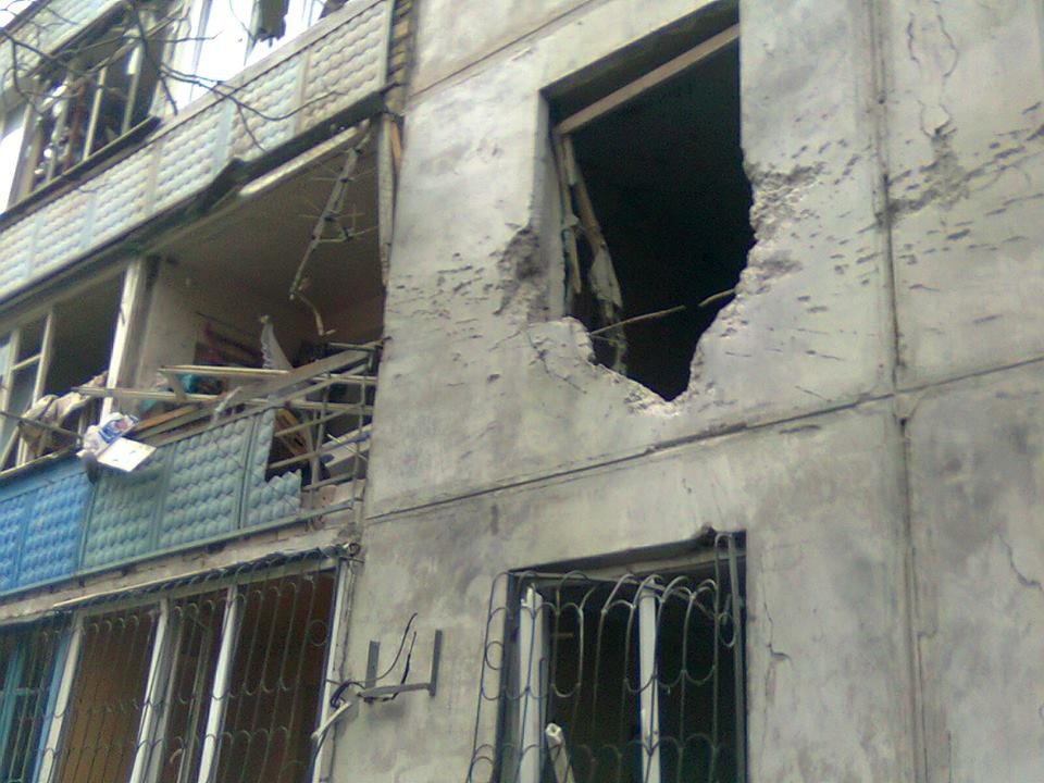 Расстрелян ВЕСЬ микрорайон "Восточный". Снаряды "Града" ложились во дворы девятиэтажек, цепляли практически все жилые этажи. Повреждены восточные стены построек. Берите карту и смотрите сами, откуда стреляли.