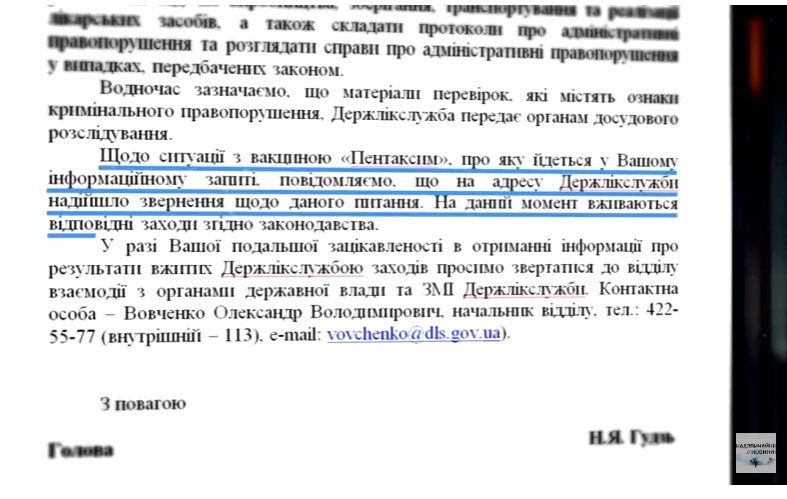 Контроль за ввозом и реализацией любых медпрепаратов лежит на Гослекслужбе. Как в Киев попала контрабанда из РФ? «Надзвичайні новини» отправили запрос в Гослекслужбы. И вот какой ответ получили журналисты: о ситуации с вакциной «Пентаксим» принимаются меры в соответствии с законодательством.