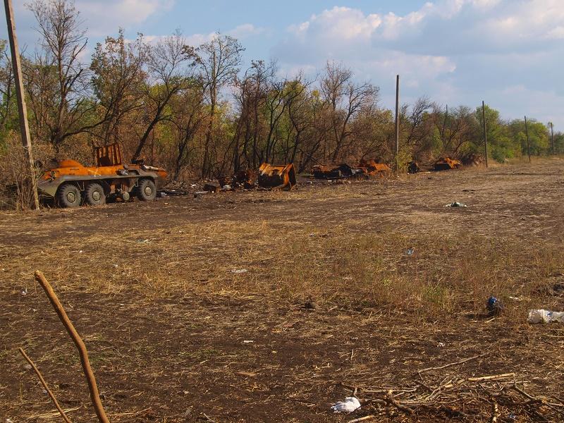 Поисковики воочию видели 7 БТР, танк Т-64 и 5 грузовиков — сожженных противником. Еще 2 БТР, 2 танка и 5 грузовиков, которое фигурирует на видео местных жителей, попали в руки сепаратистов. Остается только удивляться тому, что при таких потерях в технике было только 8 погибших.
