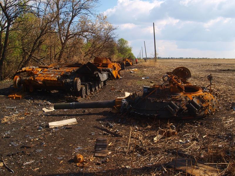 Уничтоженный танк Т-64 и другая техника со склада 92-й механизированной бригады (фото поисковика Павла Нетесова)