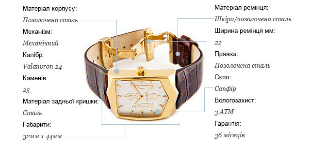 Стоимость этих часов около 20 тысяч гривен. Сделаны они из позолоченной стали, а в комплекте к аксессуару прилагается также и кожаный ремешок. Циферблат украшен трезубцем, который дизайнеры мастерски стилизировали в числа.
