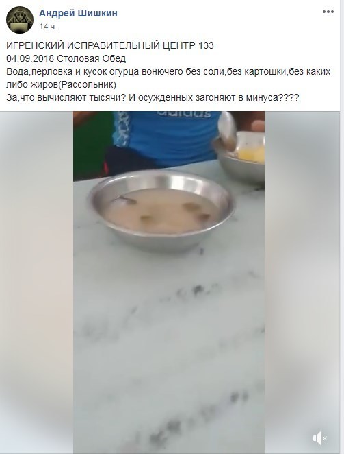 В сети появилось видео со столовой Игренского исправительного центра №133, который находится в Днепре. Заключенных кормят супом в котором нет ничего кроме воды, перловой каши и соленого огурца.