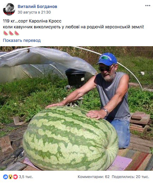 Министерство иностранных дел Украины похвалилось в своем Facebook фейковой новостью о 119-килограммовом арбузе, который якобы был выращен в Херсонской области.