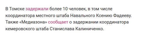 Несмотря на то, что многих организаторов митингов, в частности и самого Навального, задержали еще за несколько дней до протестов, множество людей вышли на протестные акции в своих городах. Сейчас уже известно, что почти во всех городах есть задержанные, а также избитые.