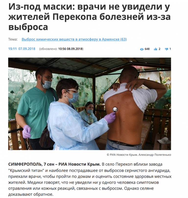 Провластные сайты утверждают, что никакого вреда здоровью людей нет, хотя жители говорят, что у них кожные высыпания от кислоты.