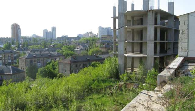 Замороженное строительство на ул. Ольшанская, 2-б по состоянию на апрель 2018 года.