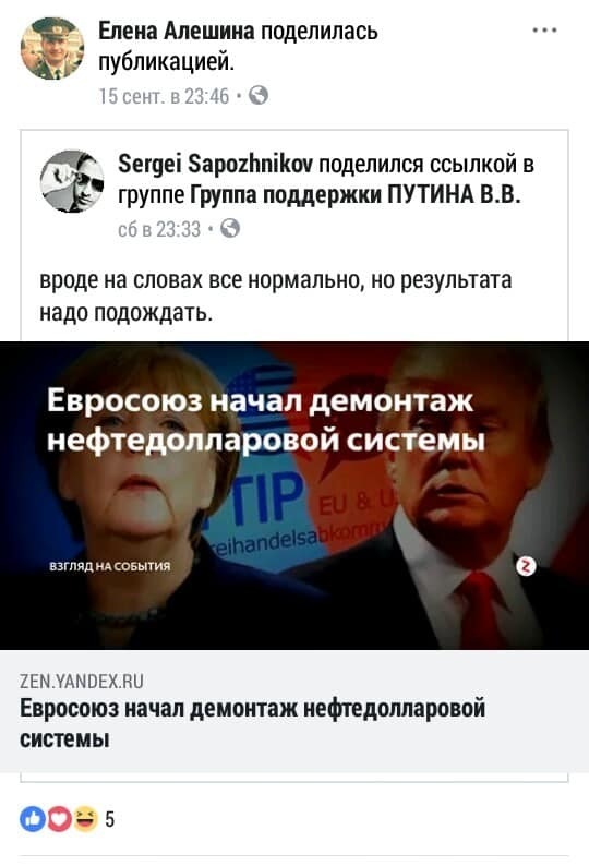 На лицемерие матери российского офицера обратил внимание и пользователь Андрей Семенов, который опубликовал подборку репостов со страницы Елены Алешиной, которыми она демонстрировала всецелую поддержку путинского режима в России и его преступлений в чужих странах.