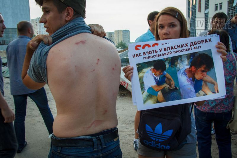 Люди выходили на мирные акции протеста, но столичная власть на беспредел со стороны застройщика не реагировала. Более того, строительство защищали «тутушки» Николая Негрича, которые палками избили двух активистов – жителей близлежащих домов за фото стройки через забор. Один из пострадавших получил серьезные травмы головы, второй — спины.