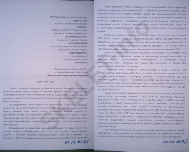 В нем Герасименко открыто заявил, что стройка — это многомиллионная трастовая афера и «крышуется» сильными мира сего. АТОшник обвинил самого господина Пилипишина (Виктор Пилипишин — экс-нардеп, экс-глава Шевченковской РГА).