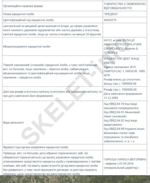 Связь на лицо. Компания «Укрпромметторг» прописана там же, где и Общество с ограниченной ответственностью «Кредекс» по улице ул. Авиаконструктора И. Сикорского, 8 (этаж 6). При этом, у них один основатель – кипрский «Кредекс Укр Дебт Фанд Лимитед».