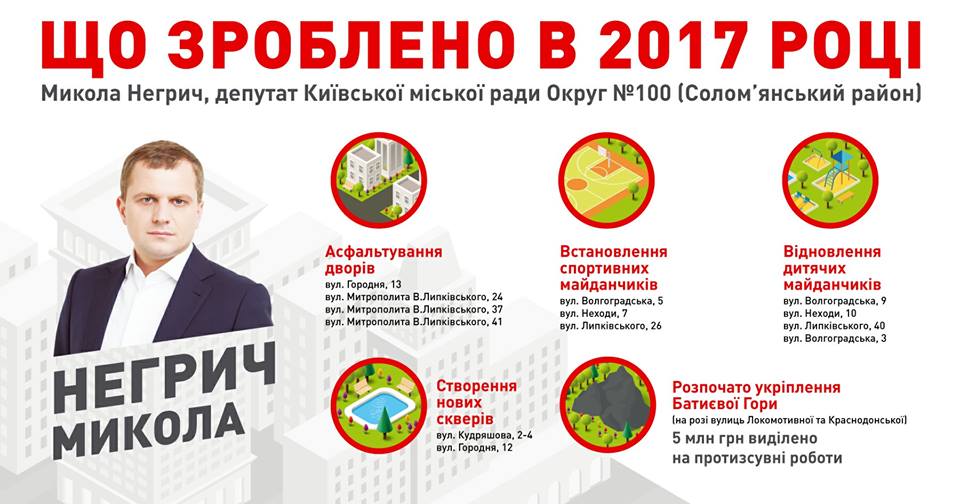 Теперь Негрич ездит по Киеву и отчитывается перед жителями города о проделанной работы.