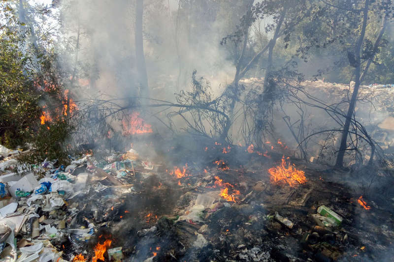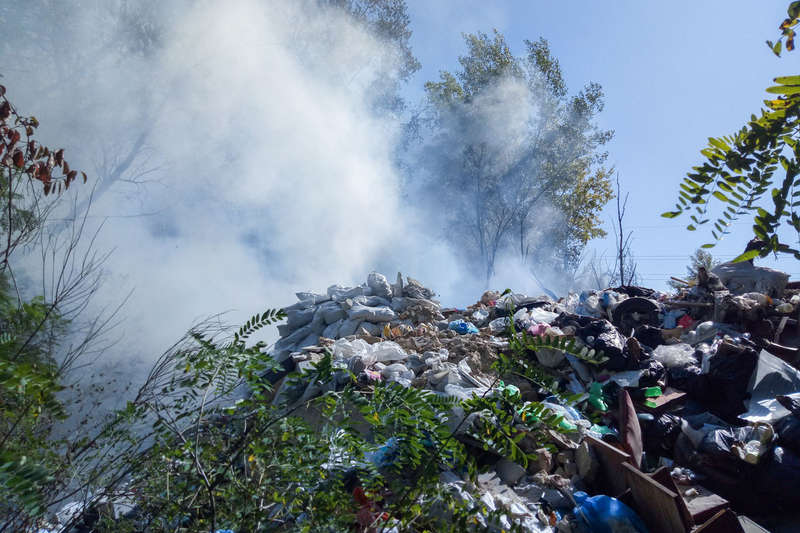 На территории большое задымление из-за пластика и полиэтилена на свалке