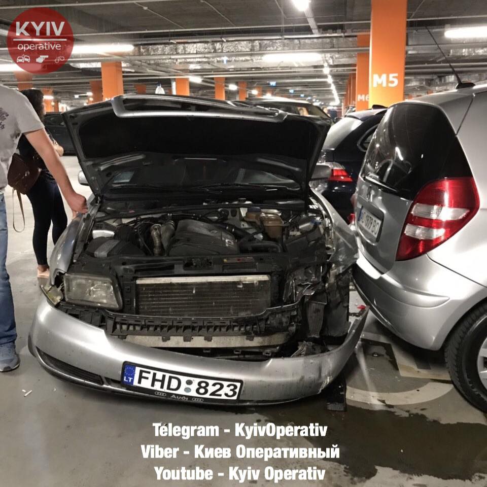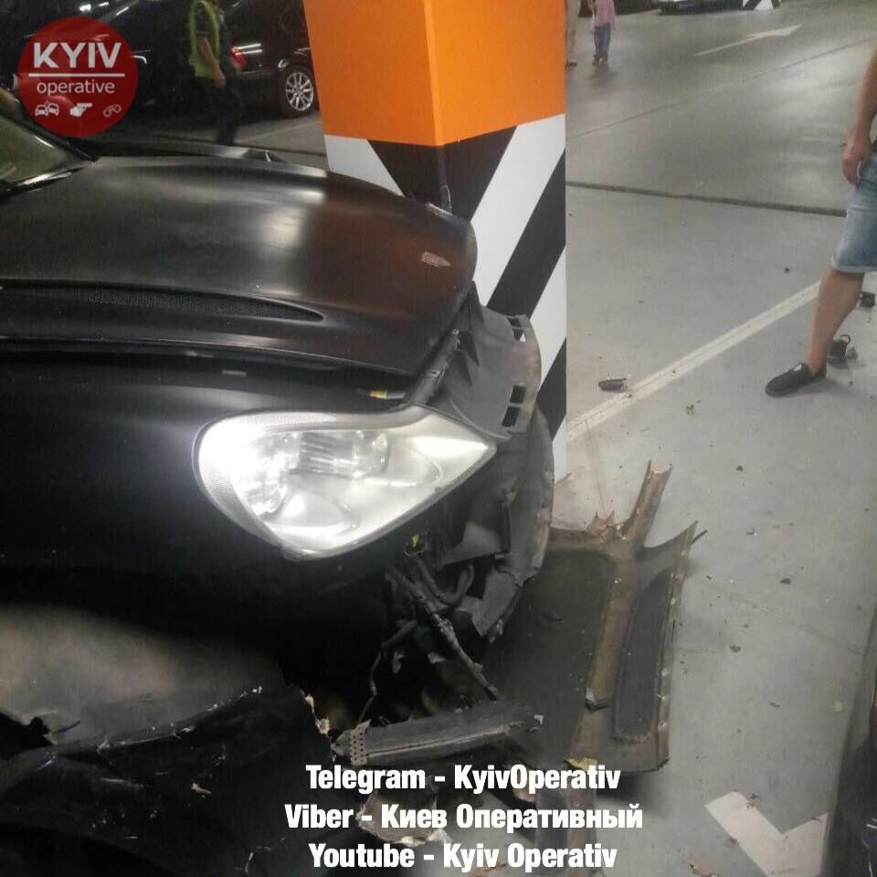 В Киеве, 22 сентября, водитель на Porsche не справился с управлением на парковке возле "Ашана" на улице Драгоманова и влетел в уже припаркованные авто и железобетонную колонну.