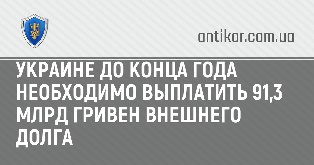 Украине до конца года необходимо выплатить 91,3 млрд гривен внешнего долга