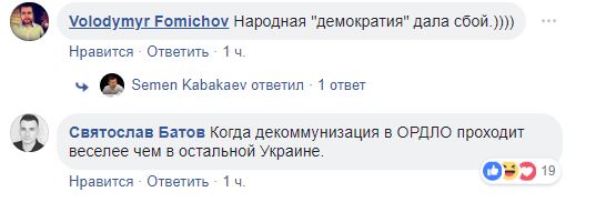 Соцсети также не остались равнодушны к произошедшему. "Народная "демократия" дала сбой", - постебался один из комментаторов. Другие остались довольны принудительной "декоммунизацией" на Донбассе.