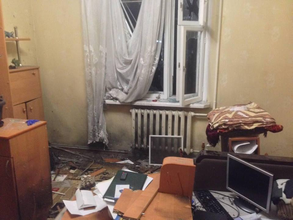 "Была очень большая взрывная волна. Выбило дверь. Пострадал отец. Потерял много крови. Сейчас в больнице. Пока ничего неизвестно", - рассказал активист.