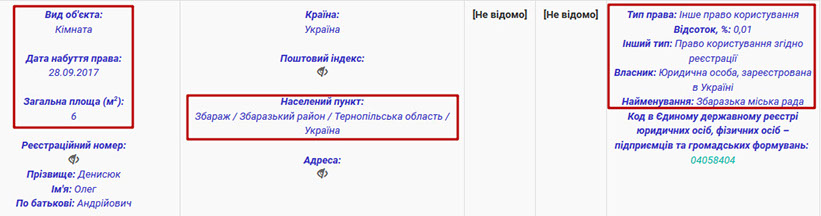 Ще одним об’єктом нерухомого майна прокурора стала кімната площею 6 кв. м. у Збаражі. Її Олег Андрійович отримав від Збаразької міської ради у 2017 році. Навіщо правоохоронцю це житло – не відомо, однак разом з цим він змінив і своє місце проживання. У декларації за 2017 рік він вказав що проживає у Збаражі.