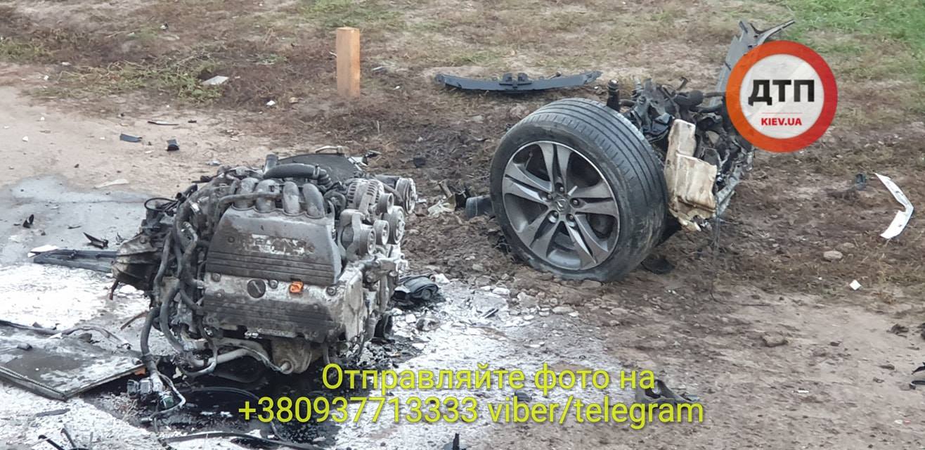 Об этом сообщает dtp.kiev.ua. Известно, что в результате ДТП от авто отлетели двигатель, коробка передач, колесо, выхлопная система.