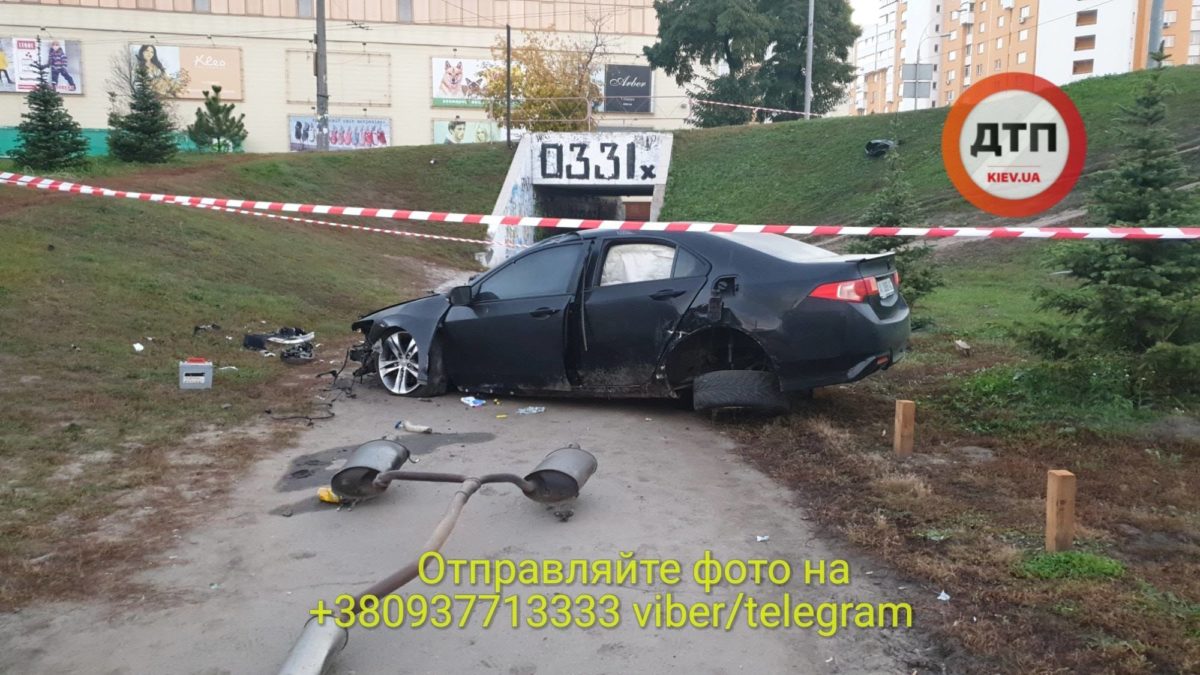 В Киеве Honda вылетела с моста, потеряв двигатель и колесо